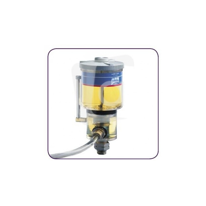 El depósito superior es un recipiente hermético para el almacenamiento de aceite de reemplazo. A través de su cuello extendido, que se sumerge en el aceite del depósito inferior, los dos depósitos están en contacto directo entre sí. Sin embargo, el aceite sólo puede fluir desde la parte superior a la inferior del depósito una vez que el nivel de aceite en el depósito inferior está por debajo del nivel preestablecido, lo que permite que el aire fluya a través del cuello extendido al depósito superior.