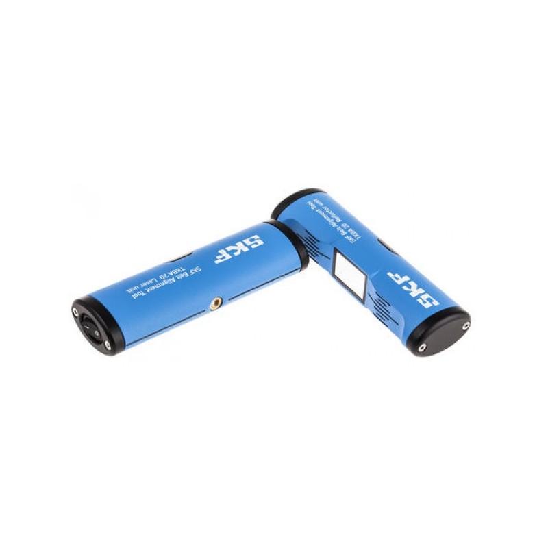 Los alineadores de poleas TKBA 20 SKF permiten la alineación de poleas y piñones en la cara lateral. La unidad se fija con imanes a la cara interior o exterior de casi cualquier polea para correas o piñón de cadena, y no tiene piezas pequeñas ni objetivos que puedan perderse. Se proyecta una línea láser desde la unidad transmisora hasta la unidad reflectora montada en la polea opuesta. La línea de referencia en la unidad reflectora indica directamente el descentramiento y la desalineación de ángulo vertical. La línea láser reflejada que se muestra en la unidad transmisora indica la desalineación de ángulo horizontal de los tres.
