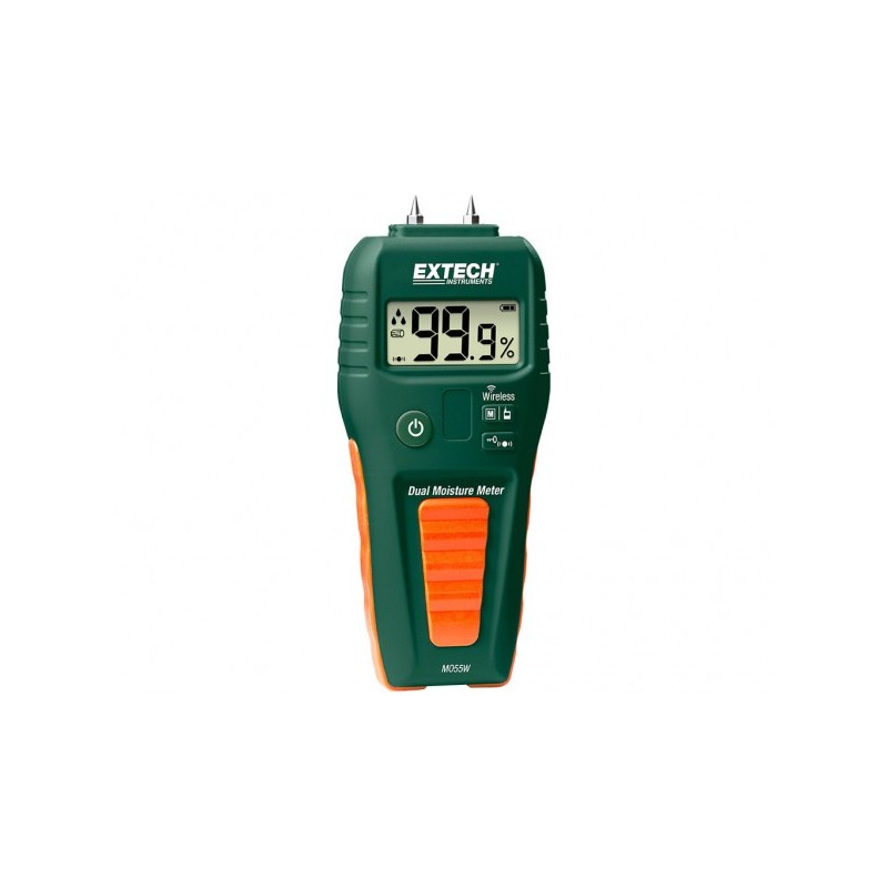Mida rápidamente el contenido de humedad en la madera y otros materiales de construcción con su elección de medición con el método Pinless (no invasivo) o Direct Pin. Con la función inalámbrica, el módulo de registro de datos Bluetooth® y la aplicación ExView® W-Series gratuita, puede transmitir lecturas en tiempo real a sus dispositivos inteligentes, almacenar más de 15 000 lecturas para transferencia inalámbrica para generar un informe/análisis de datos, agregar notas y lecturas a fotos tomadas con la cámara de su dispositivo inteligente, y use su dispositivo inteligente como una segunda pantalla para ver o compartir fácilmente. El MO55W es fácil de operar y usa íconos que indican el contenido de humedad y lo alertan cuando los niveles de humedad exceden los límites programados.
